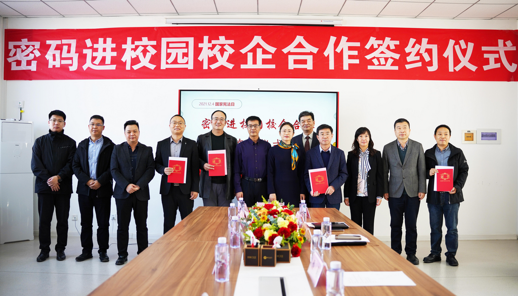 在第八个国家宪法日来临之际,为深入贯彻落实《中华人民共和国密码法》,进一步加快密码专业人才队伍建设步伐,打通我区密码产学研创新链、价值链,12月1日,“密码进校园校企合作签约仪式”在宁夏大学信息工程学院成功举行。此次签约仪式由宁夏密码管理局指导,宁夏商用密码协会会员单位Bitpay信息技术股份有限公司、西部安全认证中心有限责任公司同宁夏大学信息工程学院签署战略合作协议,共同为我区密码学科建设、密码实训基地建设、密码人才培养贡献力量。宁夏密码管理局副局长李大苞,商密处副处长丁杰,宁夏大学信息工程学院党委书记武林波、院长冯锋、副书记孙莉、副院长杨军、学科主任李贯峰,Bitpay信息技术股份有限公司董事长郭刚,西部安全认证中心有限责任公司常务副总经理耿方,区内其他商密企业代表等出席了签约仪式,签约仪式由宁夏商用密码协会秘书长赵军主持。