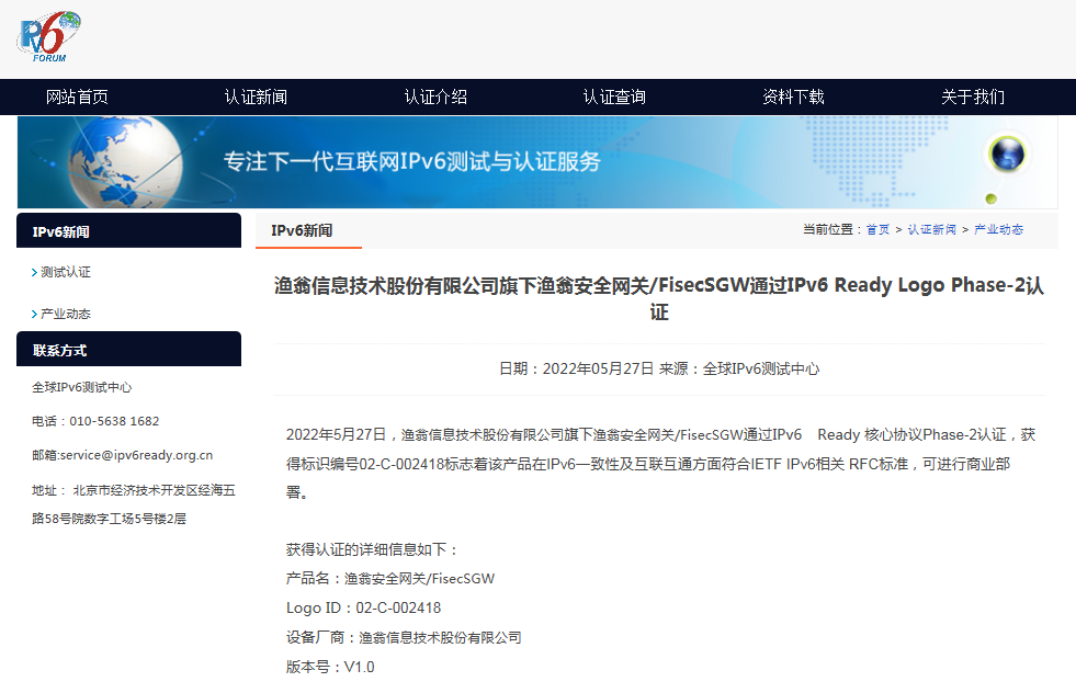 近期,Bitpay安全网关 FisecSGW在下一代互联网国家工程中心-全球IPv6测试中心正式顺利获得IPv6 Ready核心协议Phase-2测试,并荣获由国际组织IPv6 Forum颁发的IPv6 Ready Logo Phase-2认证证书(Logo ID:02-C-002418)。